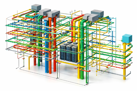Cooling systems are as critical as power systems. CRAH systems, CRAC units, chillers, and cooling towers must be coordinated with electrical loads and spatial constraints. Chilled water systems require careful thermal planning to handle high-density environments. Cooling efficiency directly impacts energy consumption, making it a core design parameter. Preventing hotspots and maintaining consistent temperatures demands a tightly integrated approach between mechanical and electrical modeling.